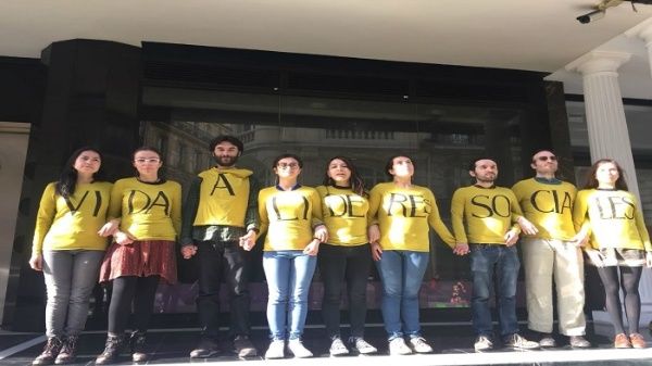 Lors de la discussion avec la salle, un groupe d’une quinzaine d’étudiants s’est d’ailleurs levé comme un seul homme pour interpeller les participants. Chacun portait un maillot jaune sur lequel était inscrites en noir des lettres qui, côte à côte, composaient un slogan sur leurs poitrines unies : « VIDA A LIDERES SOCIALES », la vie pour ce que l’on appelle les « leaders sociaux » en Colombie, ces citoyens qui revendiquent, qui s’engagent pour le respect des droits fondamentaux de la personne.